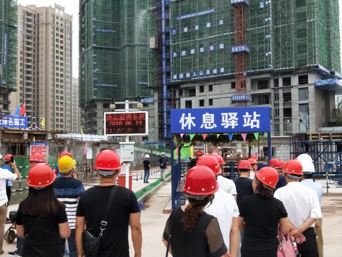 現(xiàn)場設(shè)置揚(yáng)塵監(jiān)控系統(tǒng) 觀摩隊(duì)伍參觀項(xiàng)目安全體驗(yàn)區(qū)